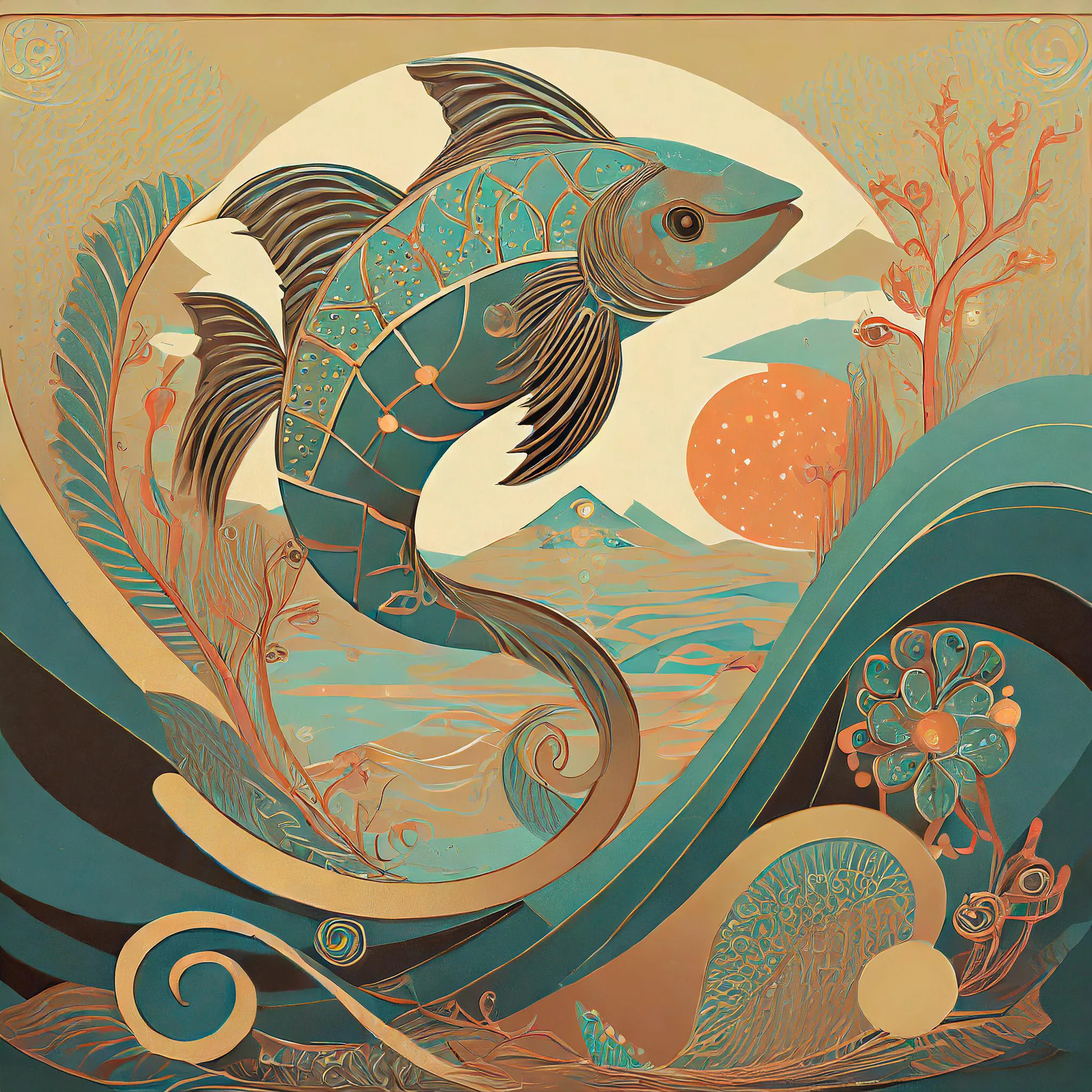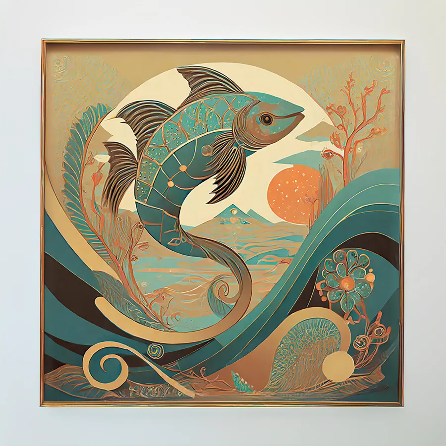 A mesmerizing mechanical koi fish gleams with copper gears and teal-patina scales as it gracefully twists through an ethereal underwater dreamscape. This surreal mashup of Art Nouveau curves and Miyazaki-esque whimsy creates a perfect tension between the organic flow of nature and precise geometric mechanics. Listen, if you're not already imagining this as the centerpiece of your meditation room/secret steampunk laboratory, I seriously question your life choices.
