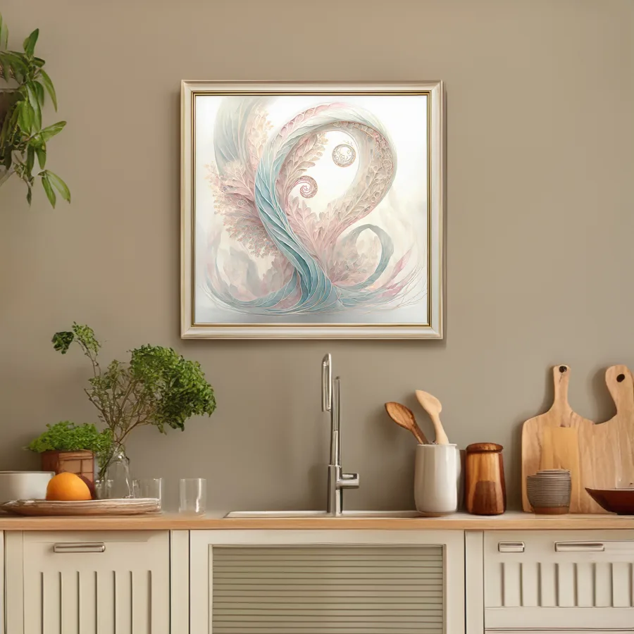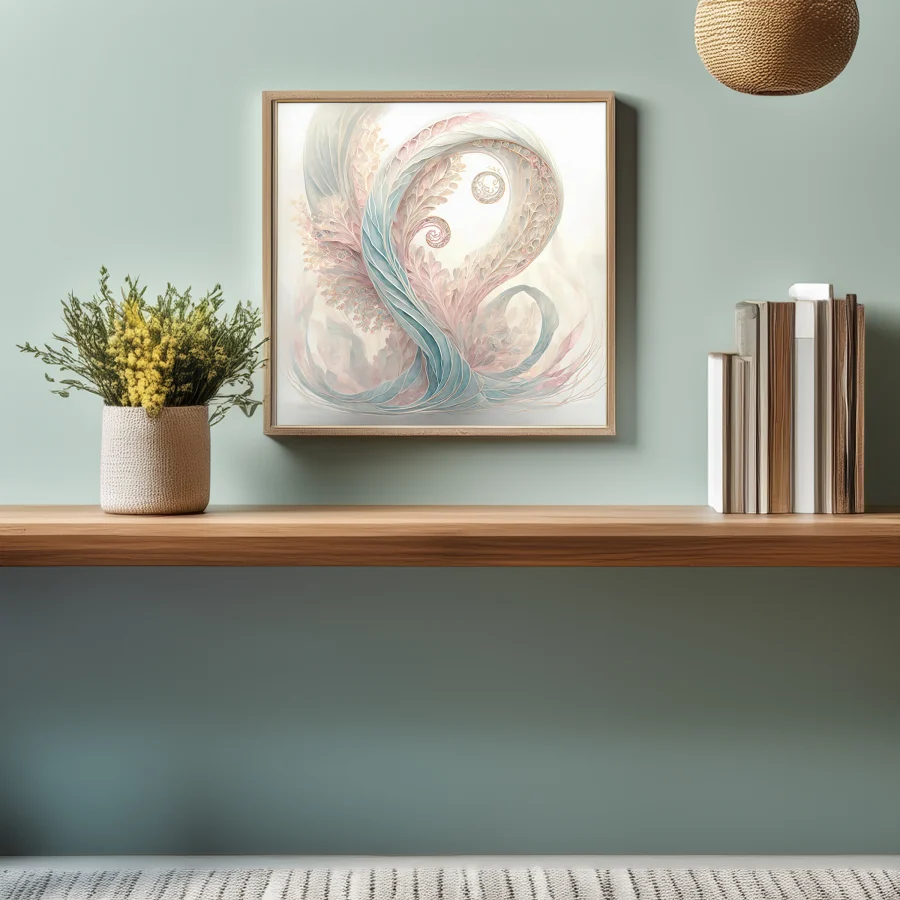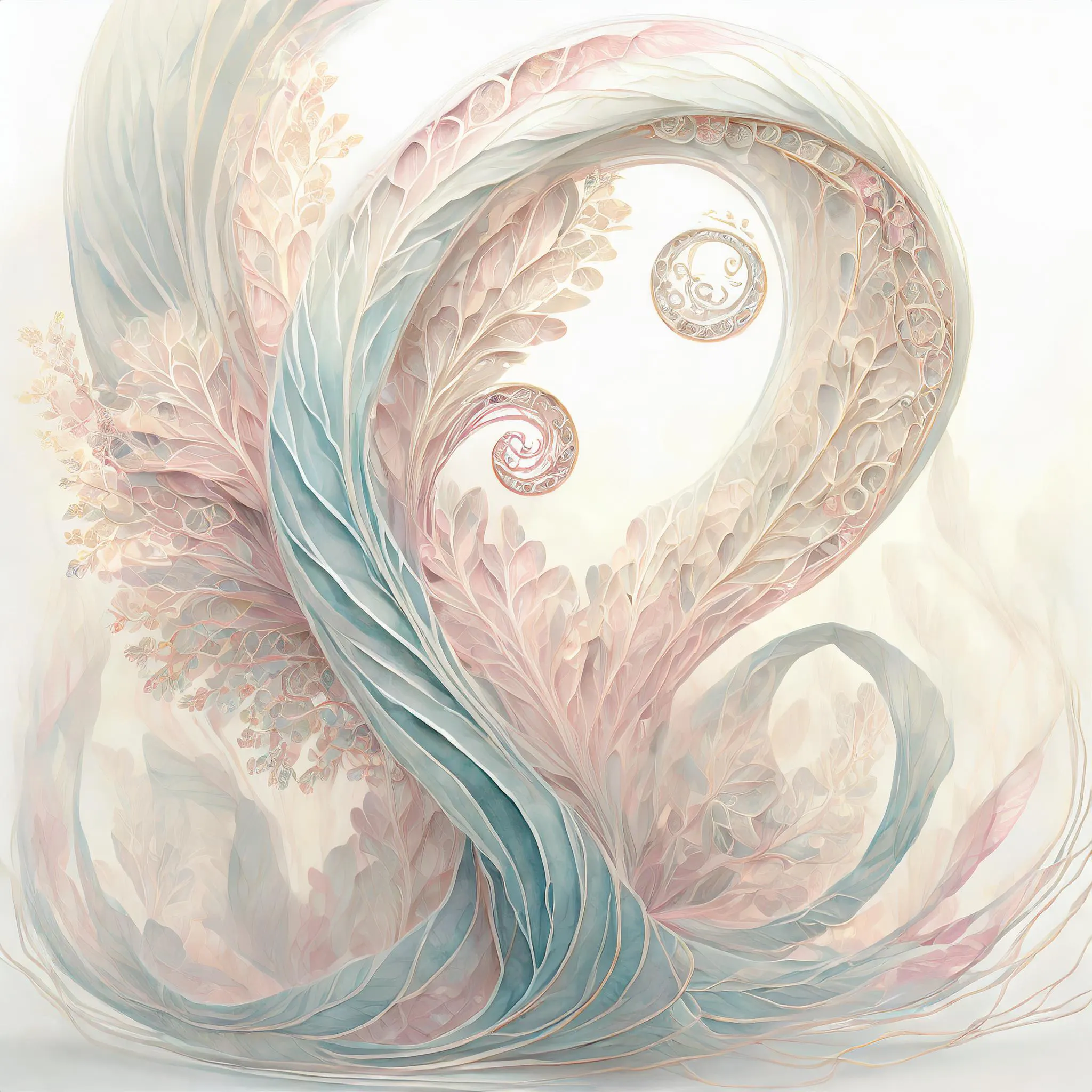 Delicate fractals spiral outward like crystalline angel wings, their gossamer tendrils weaving an intricate dance of pastel pinks and ethereal blues. The digital dreamscape manages to perfectly capture that elusive sweet spot between cottagecore whimsy and modern sacred geometry, creating a meditation-ready portal of peace. Look, I know you're already imagining this as your new phone background while manifesting your best life, and honestly, I'm not even going to judge you for it because same.