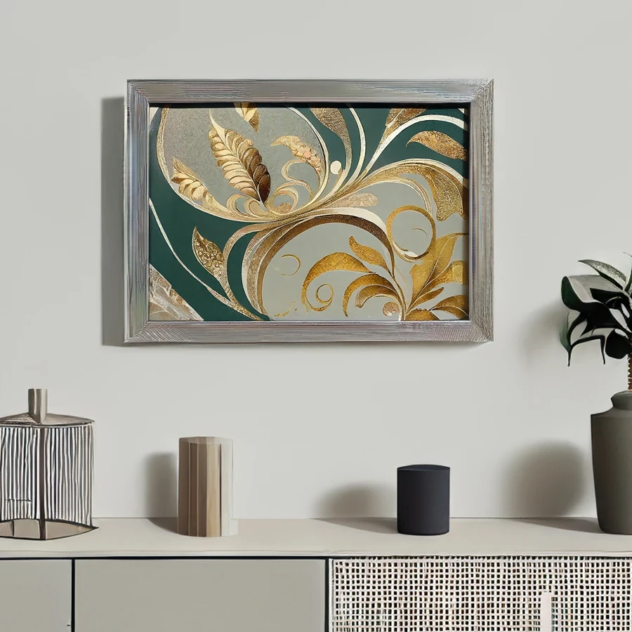 Darling, the way those gleaming gold filigree swirls dance across that deep emerald background is absolutely hypnotizing, like watching a drunk socialite twirl in a designer gown. This piece perfectly captures that old-money Victorian aesthetic, where every surface simply must remind you that someone's great-great-grandmother probably had tea with the Queen. If you're not immediately plotting to cover your walls with this and host a scandalously over-the-top dinner party where everyone drinks too much champagne and spills family secrets, we simply cannot be friends.