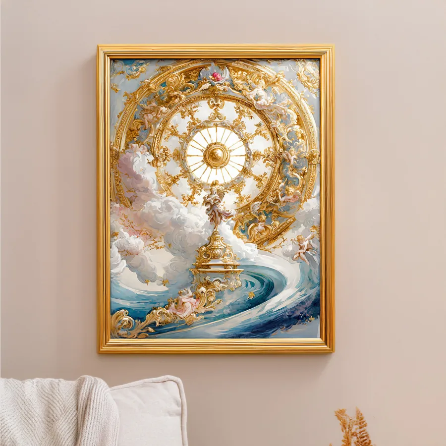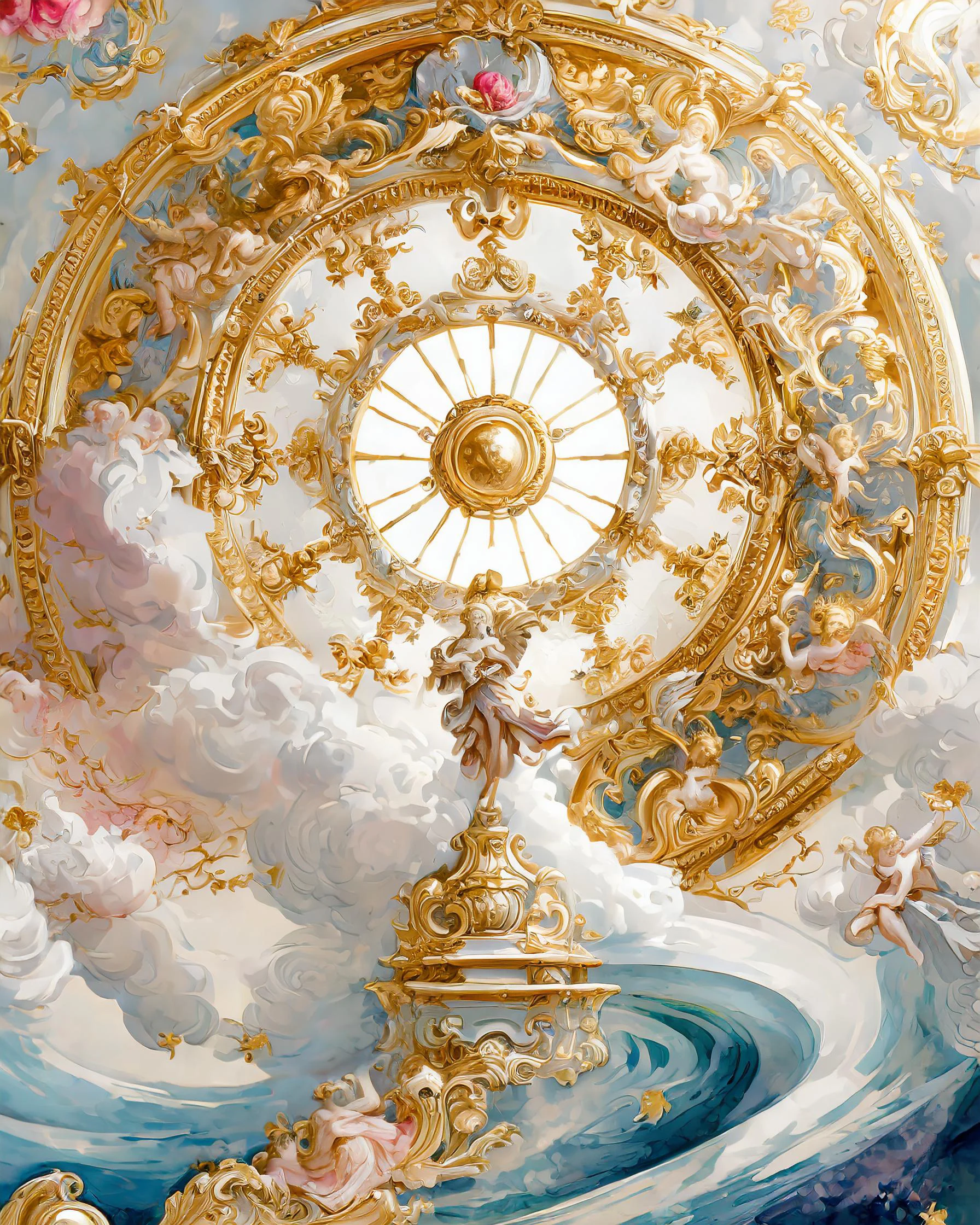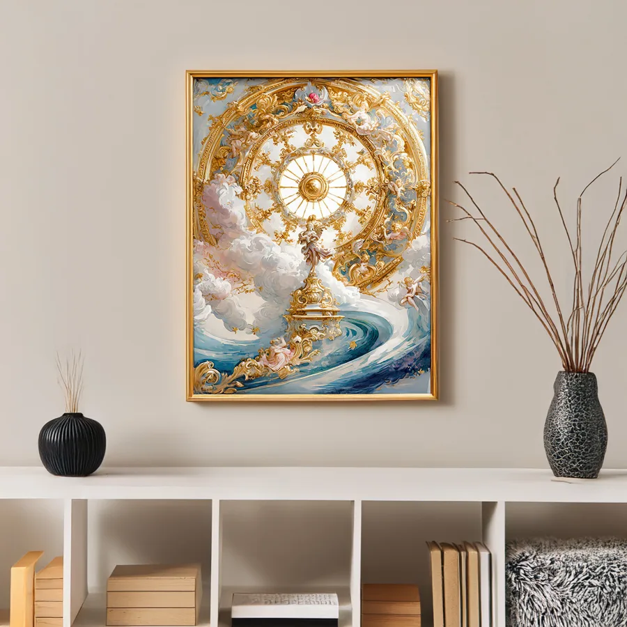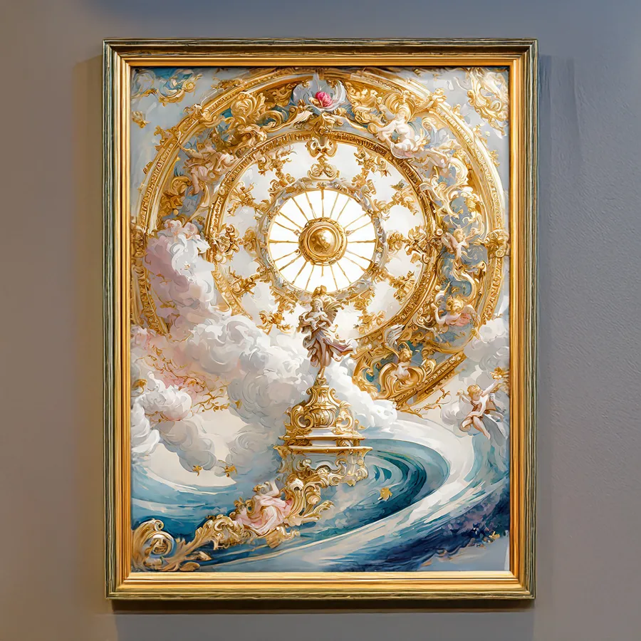 Layers upon layers of gilded cherubs and billowing clouds spiral upward into what can only be described as the most extra ceiling flex of all time. The masterful blend of Baroque and Rococo styles creates an almost overwhelming explosion of heavenly blue and gold that screams "I have more money than God and I want everyone to know it." If you're not immediately plotting how to recreate this vibe in your basic apartment with some LED strips and gold spray paint, are you even living?