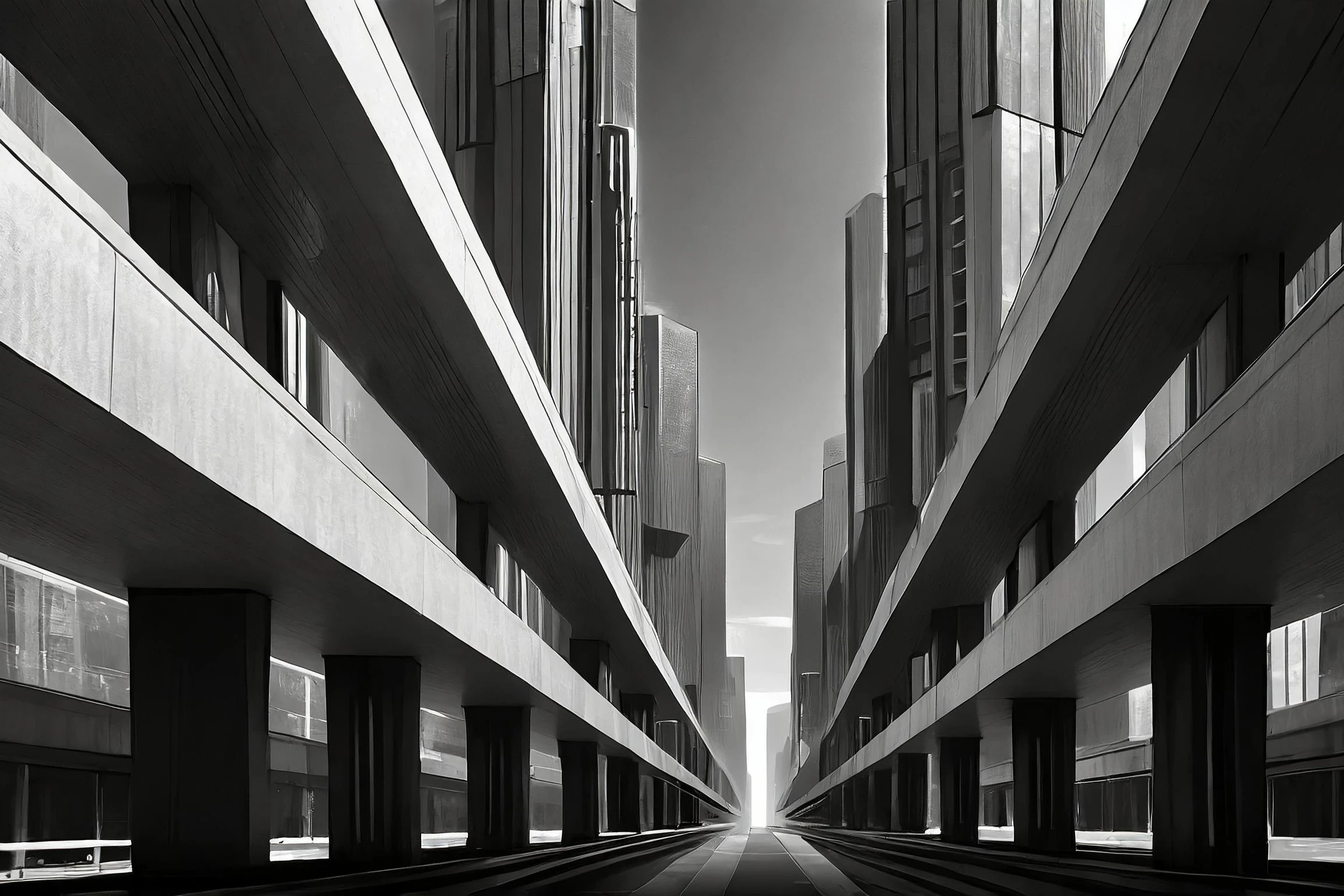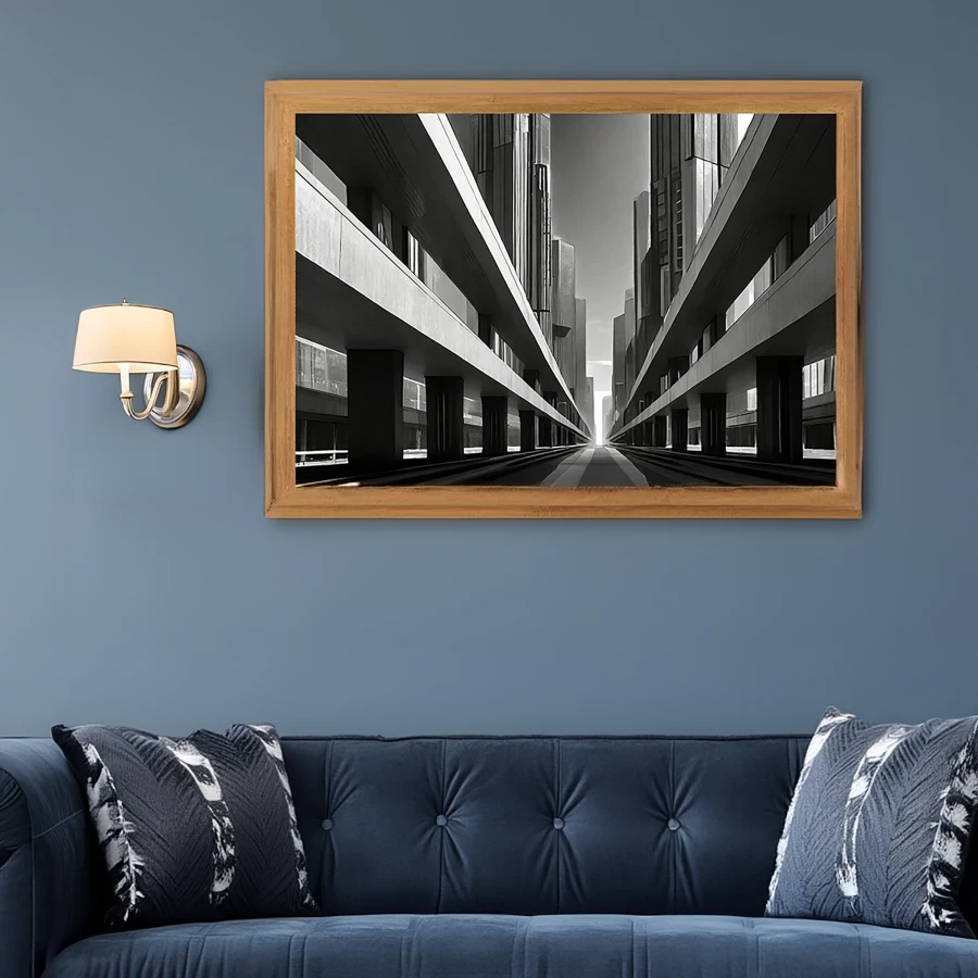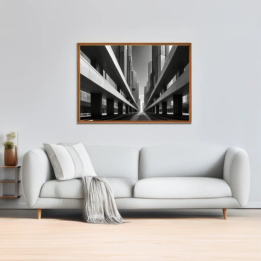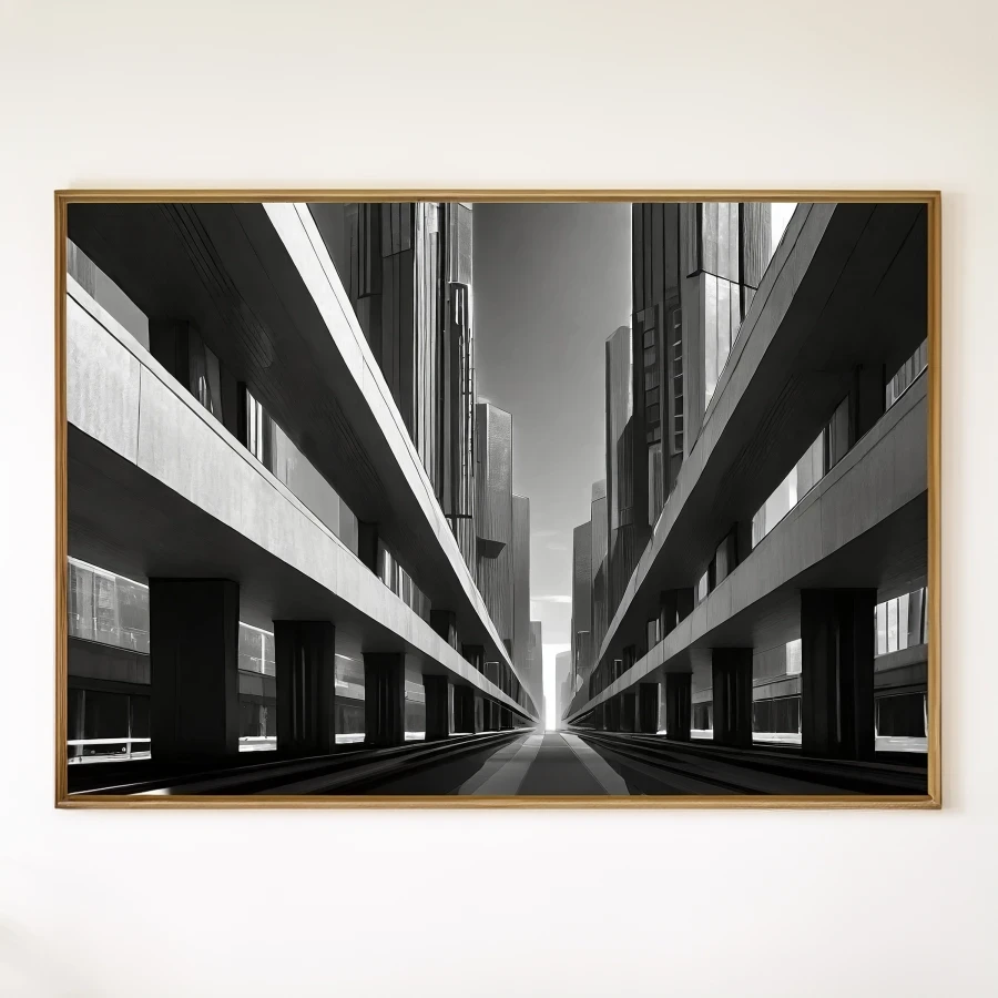 Massive concrete angles slice through space like geometric knives, creating a dizzying perspective that makes you question which way is up. The stark black and white treatment transforms this brutalist behemoth into a monument of modernist minimalism, where every shadow tells a story of urban isolation. Listen, if you don't hang this in your office to make your coworkers feel existentially uncomfortable during their coffee breaks, you're seriously missing out on some prime workplace psychological warfare.