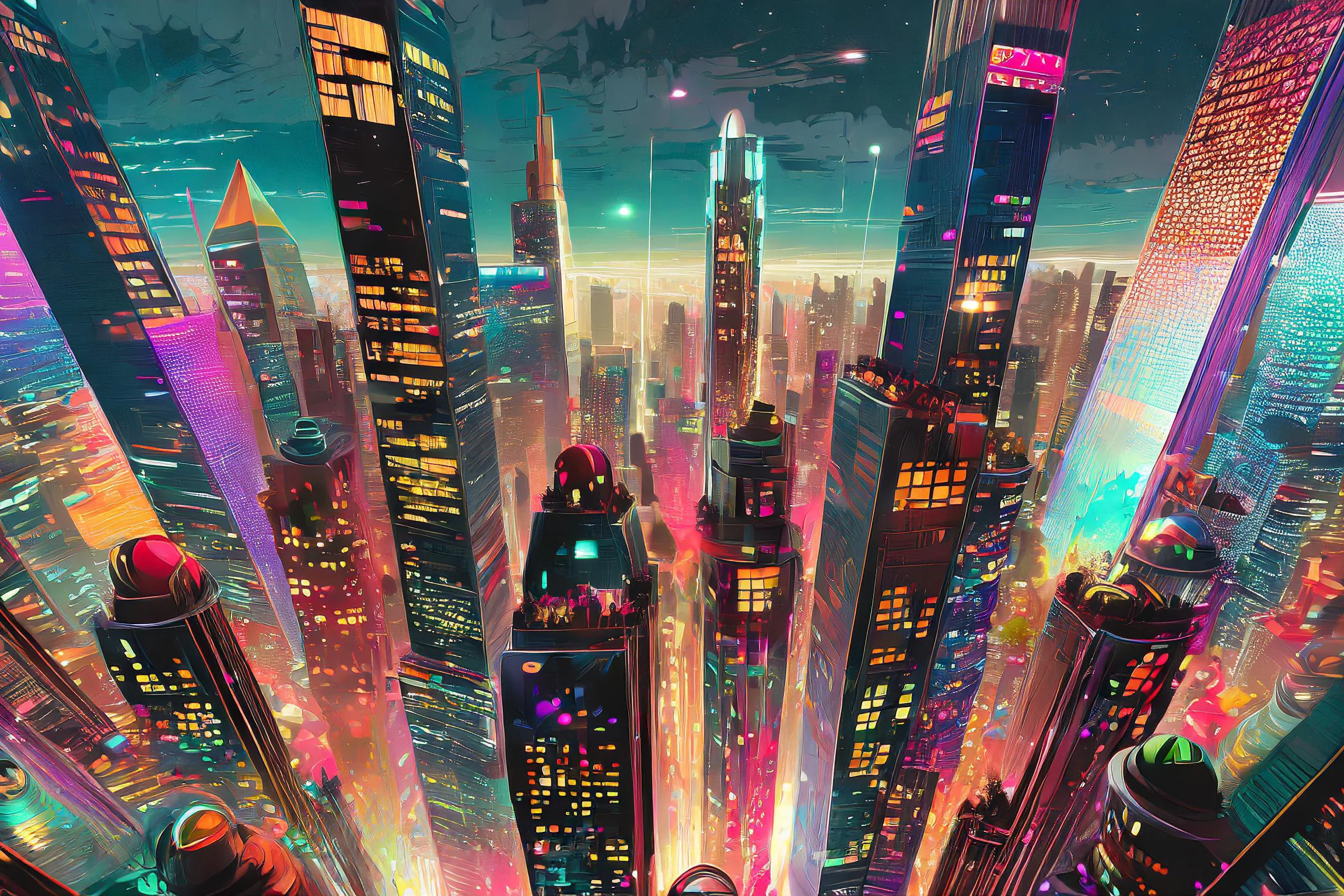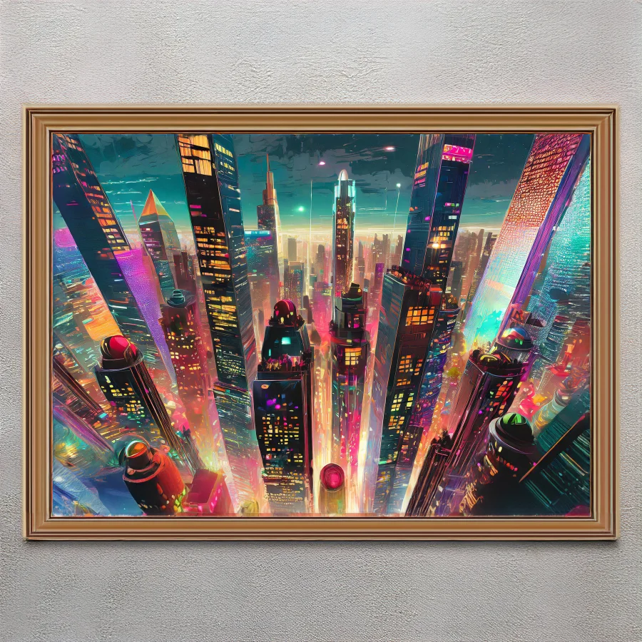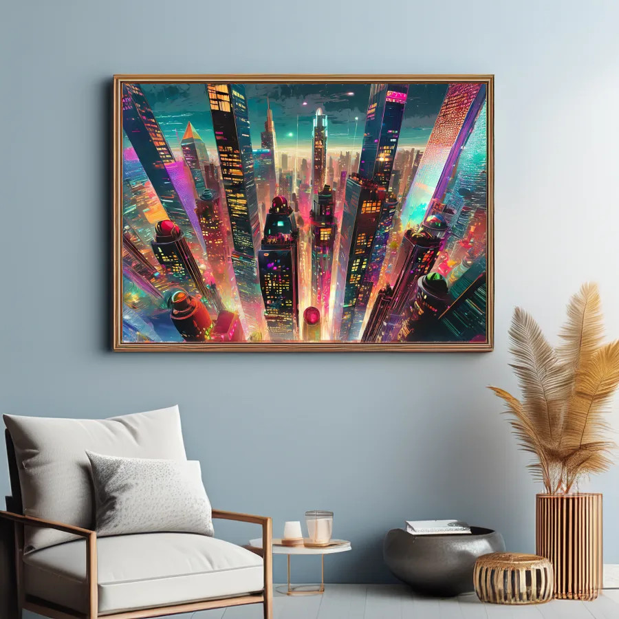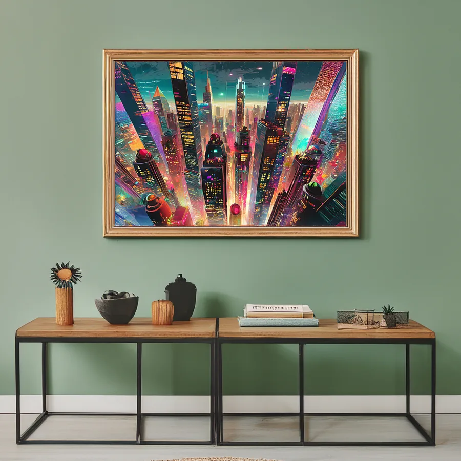 Electric magenta and cyan light bleeds through a haze of neon-drenched skyscrapers, creating impossible geometric patterns that burn themselves into your retinas like a digital fever dream. The aesthetic perfectly channels that distinct 3AM vaporwave energy where Blade Runner crashes headfirst into Spider-Verse, creating a uniquely nostalgic future that never was but always should have been. Look, if this doesn't make you want to immediately boot up your RGB-everything gaming setup and blast some lo-fi beats while pretending you're a cool cyber-detective in Neo-Tokyo, I honestly don't know what will.