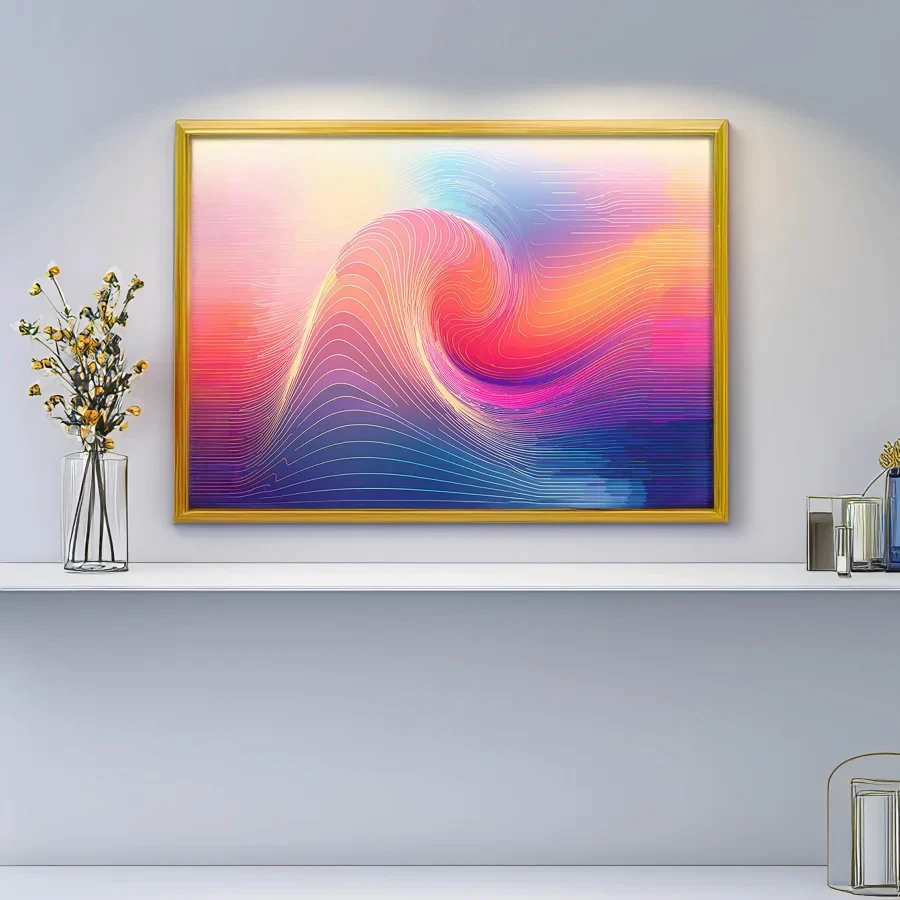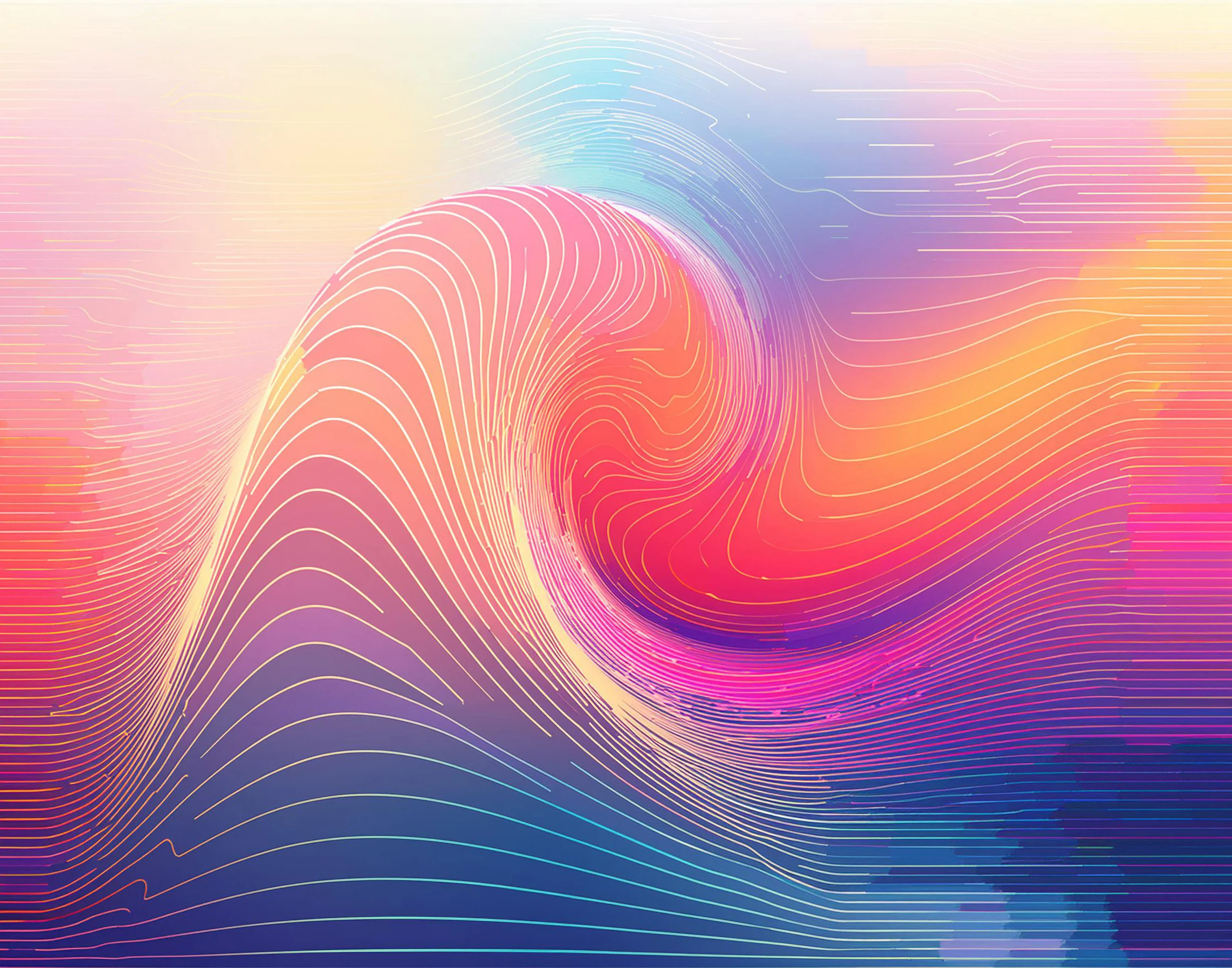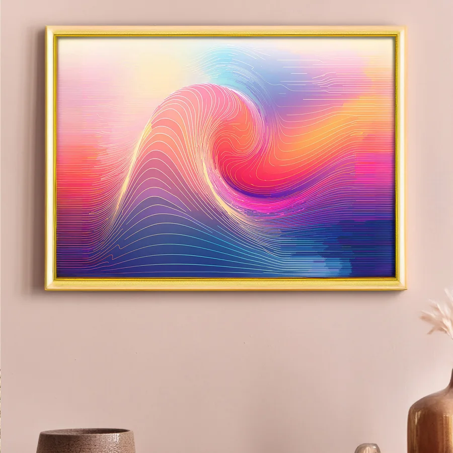 Hypnotic waves of coral and purple undulate across the digital canvas like a psychedelic sunset having an existential crisis. The minimalist gradient aesthetic manages to somehow channel both zen meditation vibes and that try-hard tech startup energy we all know and tolerate. If you're the kind of person who gets oddly emotional about color theory at 3 AM while listening to lo-fi beats, this piece is probably already your phone's wallpaper.