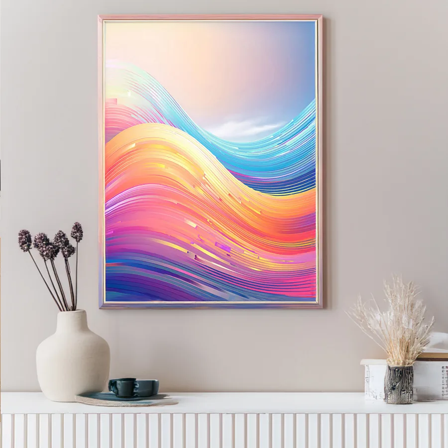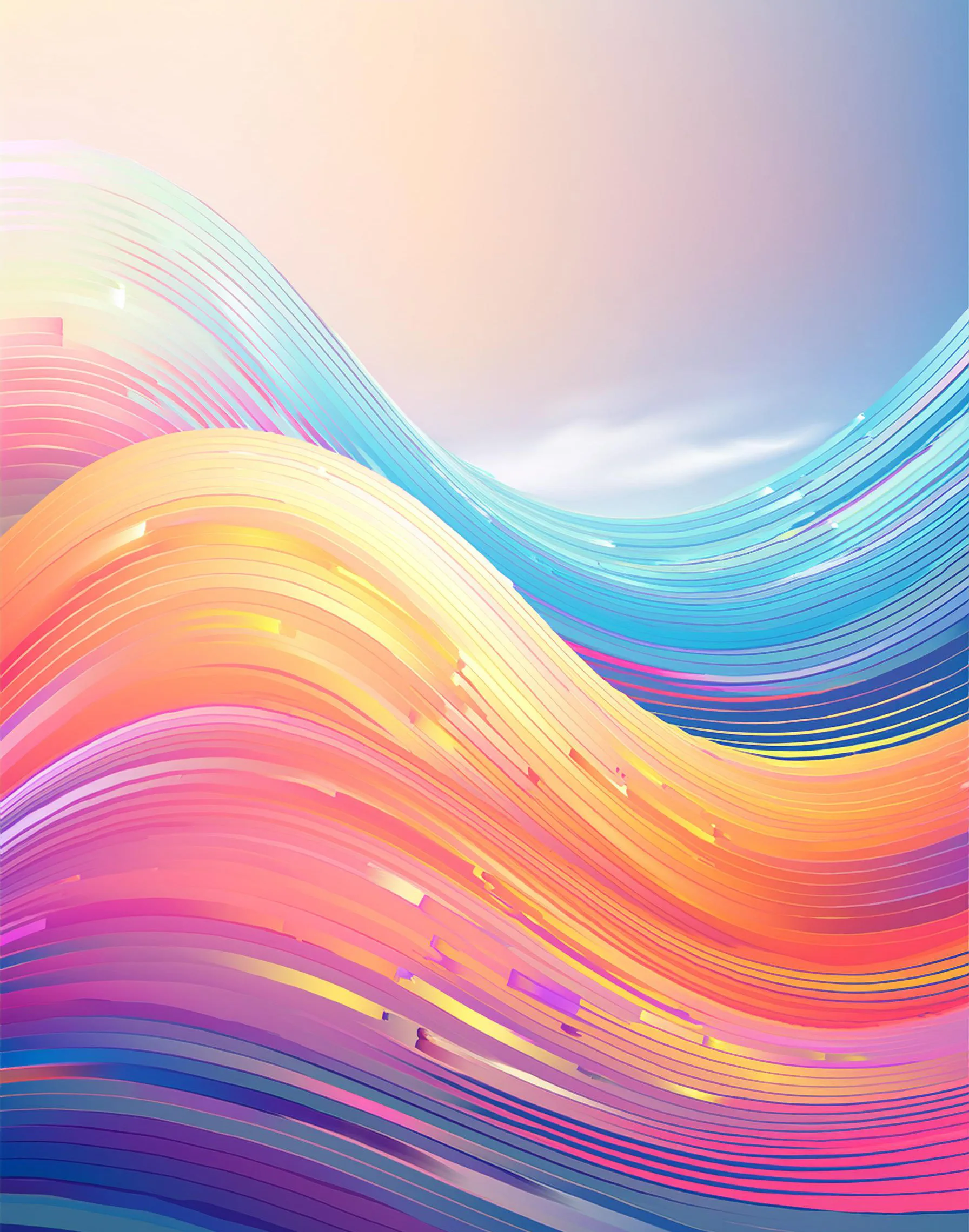 Undulating waves of liquid rainbow colors dance across the canvas like some kind of psychedelic pride parade decided to melt into a screensaver from the future. The minimalist design merges vaporwave aesthetics with flowing gradients, creating that perfect sweet spot between corporate-friendly and chaotically queer. Perfect for that moment when you want your workspace to say "I'm professional enough to file taxes but still cool enough to have strong opinions about Spotify's algorithm."