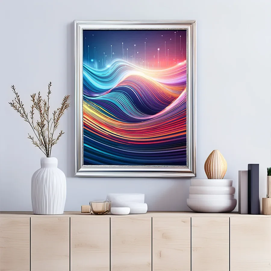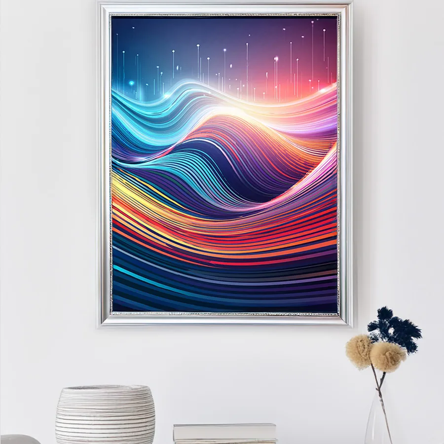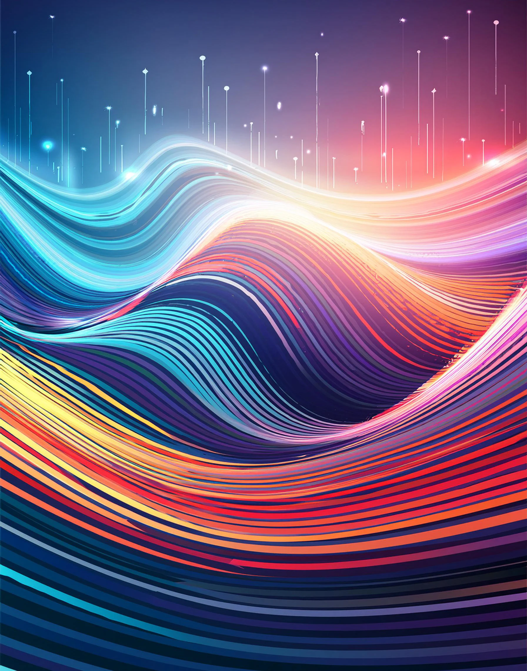 Massive undulating waves of neon rainbow light cascade across the digital canvas like a psychedelic aurora borealis having an existential crisis. The flowing geometric patterns merge vaporwave aesthetics with sound visualization technology, creating a mesmerizing dance of color that would make both meditation gurus and synthwave producers weep tears of joy. Look, if you're not already imagining this as your Zoom background while pretending to pay attention in meetings, you're honestly doing it wrong.
