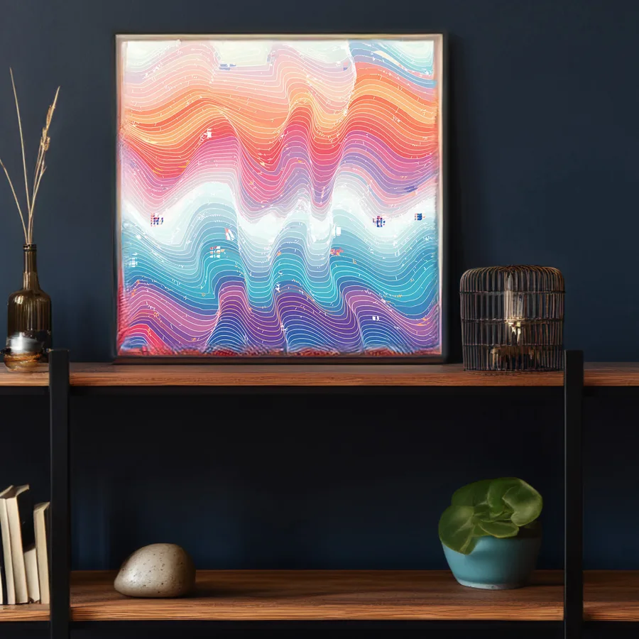 Swirling waves of cotton-candy pastels dance across the canvas like a meditation session gone delightfully off the rails. The minimalist yet dreamy aesthetic perfectly captures that 3 AM vaporwave playlist vibe when you're questioning if you're actually awake or just floating through a lo-fi dimension. Look, if your office walls aren't making you feel like you're being gently hugged by a cloud that went to art school, you're doing it wrong.